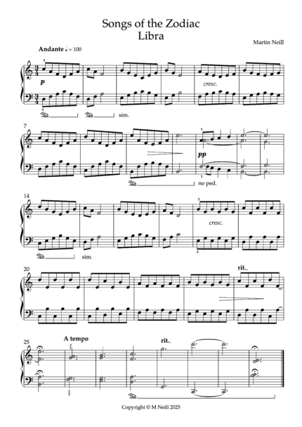 Librans are reported to like symmetry, so here is a piece where the hands remain in symmetry for every note!