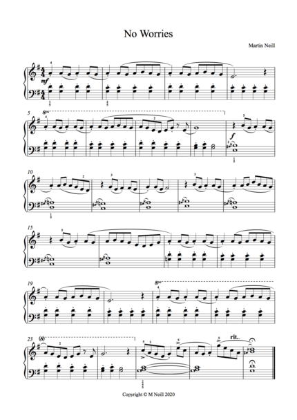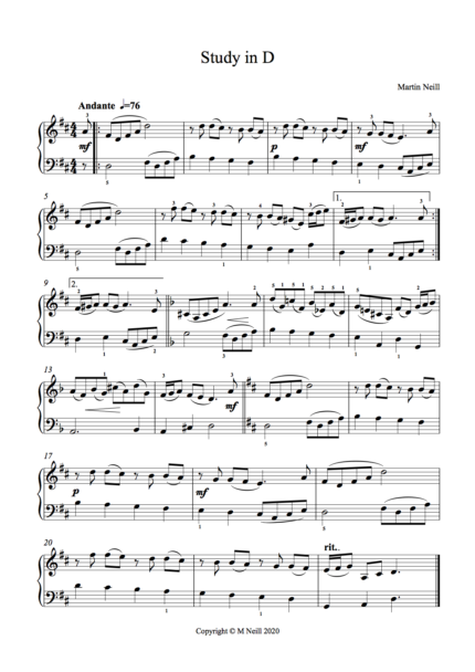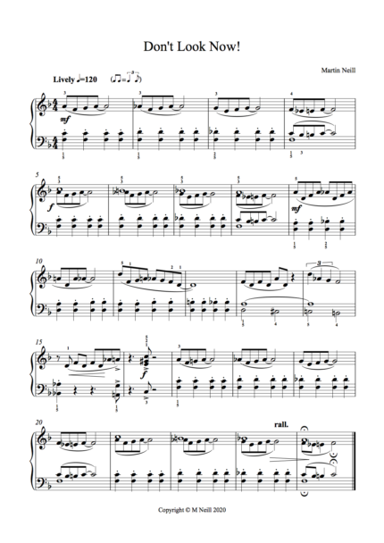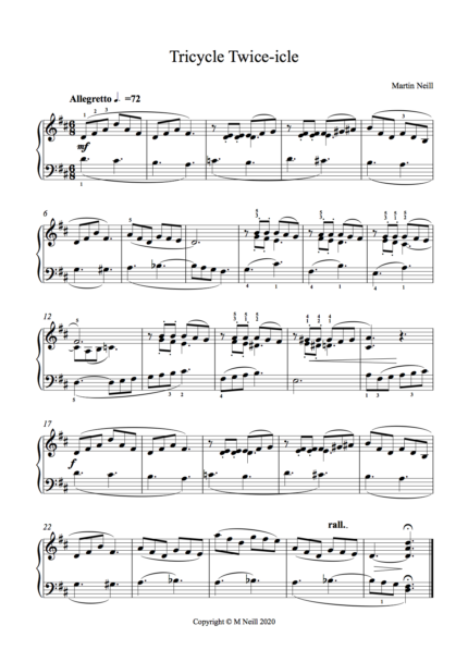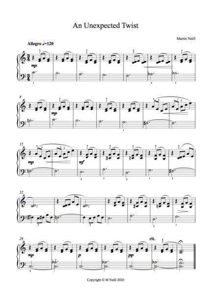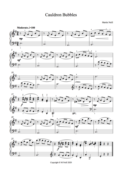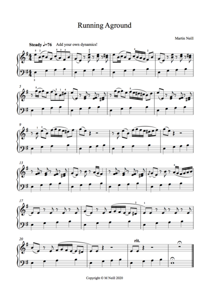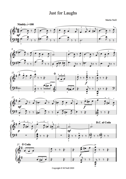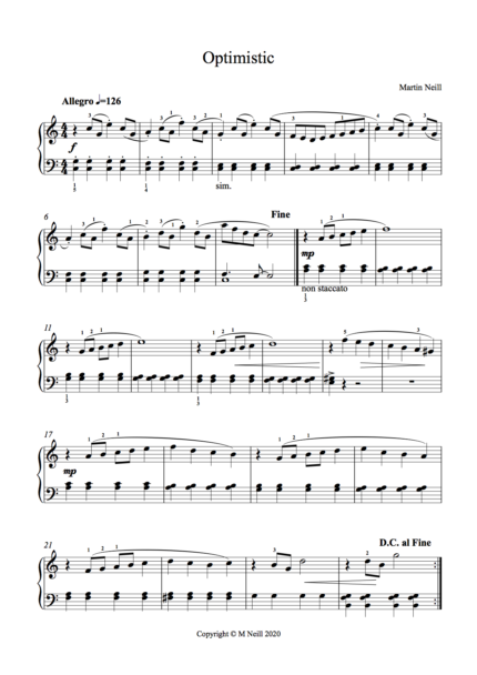 I wrote this tune to cheer up some of my students during the lockdown. The semibreves in bars 6 and 8 can be omitted if this is an awkward stretch.